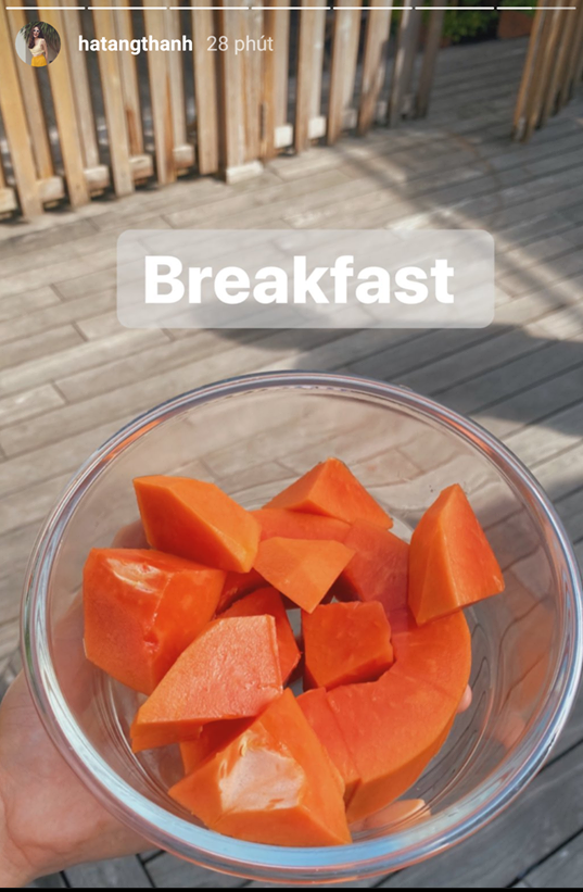 Nhắc đến loại trái cây mà Hà Tăng yêu thích, hẳn nhiều người sẽ nghĩ đó là quả bơ, mà quên mất một loại quả bổ dưỡng khác nàng "ngọc nữ" cũng rất yêu thích. Đó là đu đủ. Thậm chí có không ít lần, Tăng Thanh Hà còn đăng ảnh khoe bữa sáng của mình có loại quả thơm ngon này.