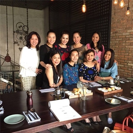 Để che chắn vòng 2 khỏi lộ, Thu Minh chọn cách nép sát vào bạn, còn Tăng Thanh Hà thì sử dụng chiếc túi để làm "lá chắn" che bụng bầu khi chụp hình. Qua hình ảnh cho thấy, bữa tiệc còn có chị gái Thu Minh, ca sỹ Mỹ Lệ cùng các bạn khác tham gia.