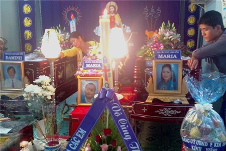 Thi thể bé trai 10 tuổi vẫn nằm chờ cha đi biển về để nhìn mặt lần cuối. Căn nhà nhỏ dưới chân núi trùm không khí tang thương với 3 quan tài đặt song song.
