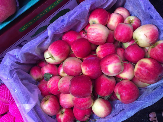 "Táo Trung Quốc là loại lớn, hàng có quanh năm. Còn đây là táo được đồng bào phía Bắc trồng, mỗi năm vô vụ thu hoạch chỉ có 2 tháng nên em phải tranh thủ mua đi. Hết mùa, có tiền cũng không mua được. Táo này rất giòn và ngọt. Chị bao ăn, em yên tâm" – người bán quả quyết.