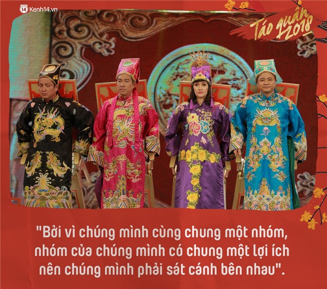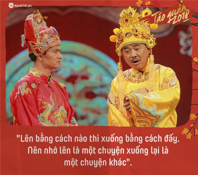 Bằng sự duyên dáng và hóm hỉnh, các nghệ sĩ đã đem đến cho người hâm mộ những phút giây thư giãn trước thời khắc chuyển giao năm mới. Tuy nhiên, chắc chắn công chúng không thể bỏ qua những phát ngôn "chất như nước cất" của Táo Quân 2018.