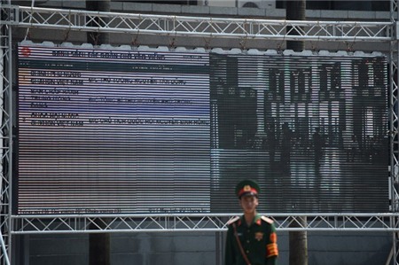 | Hệ thống màn hình led được bố trí ở hai nơi, gần cửa và ngay thẳng lối vào, mỗi chiếc rộng từ hơn 200 inches đến trên 300 inches. |