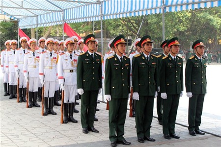 | Các chiến sĩ trong đội nghi lễ được điều chỉnh từng động tác cho đều. |