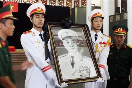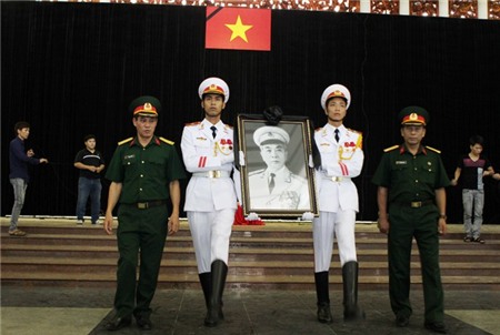 | Bên trong, di ảnh cỡ lớn của Đại tướng đã được chuẩn bị. |