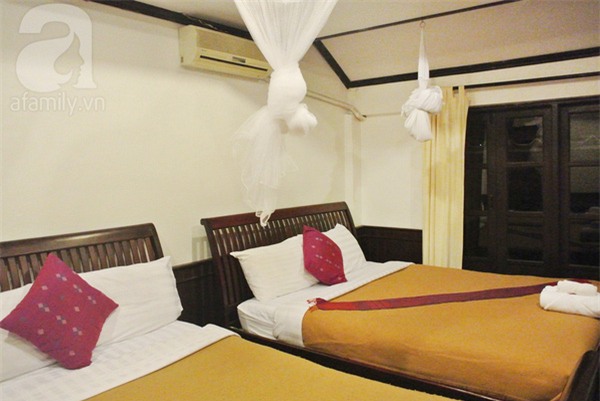 Ở trung tâm Viên Chăn hay Luang Pha Băng có khá nhiều nhà nghỉ giá rẻ, khoảng 15-20$ cho phòng đôi. Có máy lạnh, nước nóng, phòng tắm riêng. Nếu phòng quạt thì khoảng 10$. Nếu dùng chung phòng tắm thì rẻ hơn 1 chút.