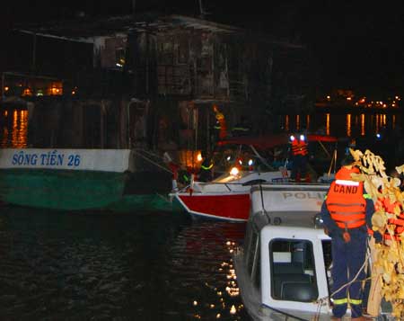 Các tàu đã nhanh chóng phun nước hỗ trợ dập tắt đám cháy. Ngọn lửa cược khống chế, nhưng tàu du lịch này bị cháy hoàn toàn, chỉ còn lại một phần thân tàu.