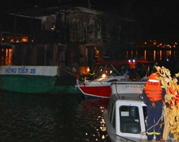 Lực lượng cảnh sát PCCC&CNCH (Công an tỉnh Quảng Ninh) đã có mặt tại hiện trường, huy động các tàu lân cận hỗ trợ chữa cháy.
