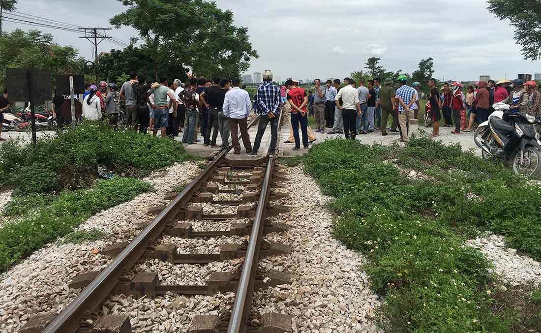 Tàu hỏa đi qua nơi xảy ra vụ tai nạn sáng nay