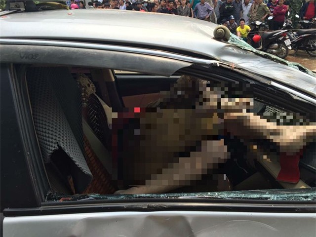 Thi thể các nạn nhân trong chiếc taxi hãng Tam Gia. Ảnh: Đức Quỳnh.