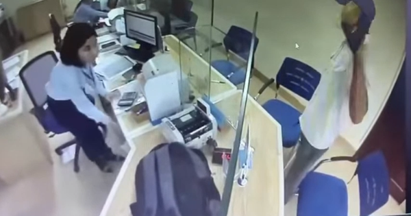 Thấy vậy, một nữ nhân viên ngân hàng vội vàng mở ngăn kéo, cho toàn bộ số tiền mặt có trong ngăn vào balo của nghi phạm. Trong lúc này, kẻ cướp đứng lên bàn giao dịch, trong tay vẫn cầm con dao. Lấy được tiền, đối tượng thản nhiên đi bộ ra ngoài.