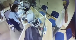 Theo hình ảnh từ camera giám sát trong phòng giao dịch, nghi phạm ném balo vào bên trong khu vực của nhân viên, rồi rút dao đe dọa. Sau đó, đối tượng đổ nước trong chai lên người.