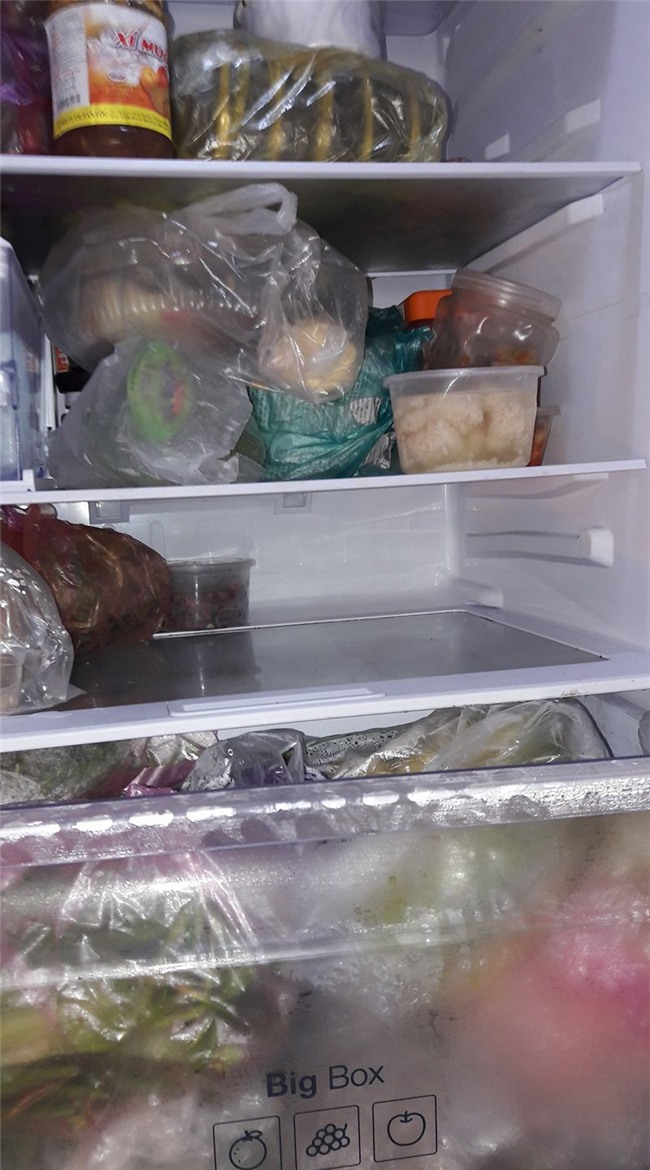 Bạn N.T.Q kể khổ: "Trước tủ lạnh nhà mình cũng chật kín thế. Sau đó bố mình thay cái tủ lạnh khác to hơn, và nó vẫn chật kín như thế".