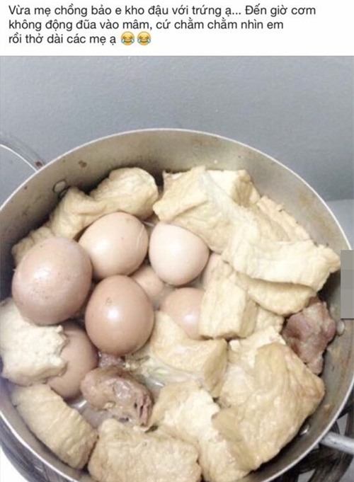 Cô gái kho đậu với trứng nguyên quả làm dân tình cười ra nước mắt.