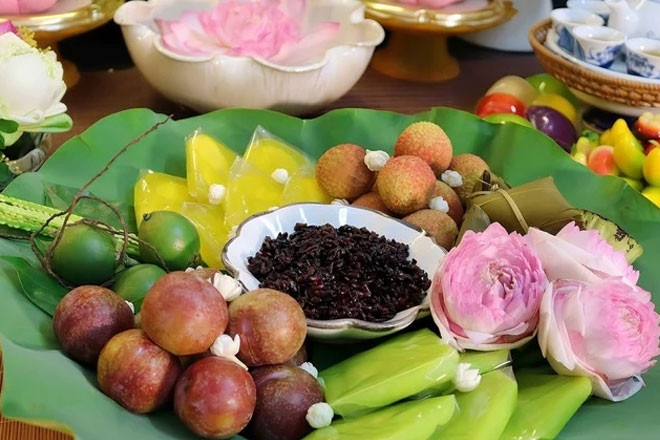 Lựa chọn thanh tịnh trong ẩm thực: Thay vì mâm cúng đầy sát sinh, trong ngày Tết Đoan ngọ chúng ta có thể chọn ăn chay thanh đạm, dùng trái cây đầu mùa, cơm rượu, bánh tro để tiếp nối truyền thống mà vẫn thực hành từ bi và tiết chế. Ăn để nuôi thân, nhưng không nuôi dưỡng dục vọng, thể hiện sự hài hòa giữa văn hóa dân gian và giáo lý nhà Phật.