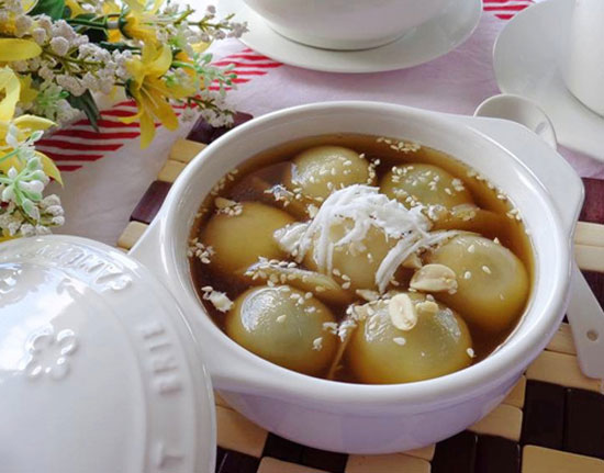 Chè trôi nước không chỉ là món chè truyền thống trong ngày 3/3 âm lịch, mà nó còn là món ăn được yêu thích vào ngày Tết Đoan ngọ. Từng viên chè tròn làm bằng bột nếp trắng, bên trong có nhân đậu xanh, ăn cùng với nước cốt dừa rất hấp dẫn.
