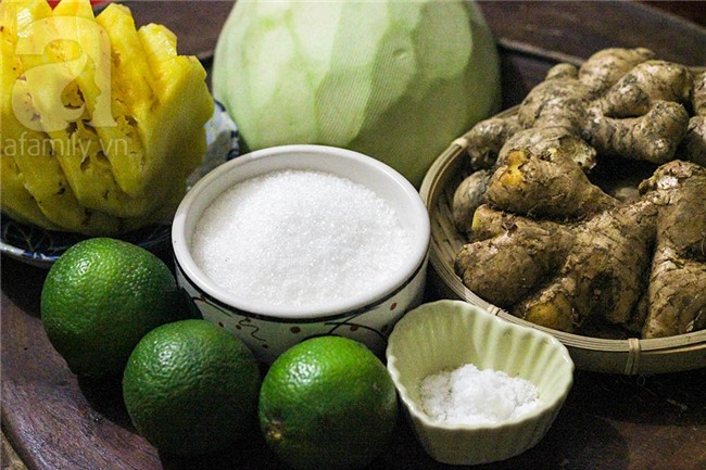 sợi gừng và sợi đu đủ xanh. Thêm vào đó là vị dứa và chanh khiến cho