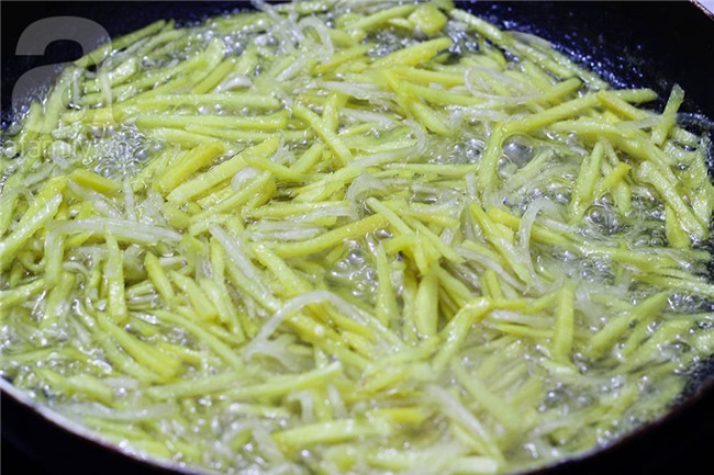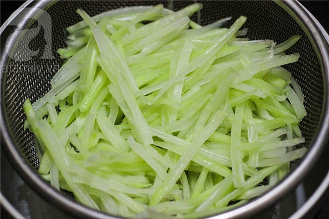 Đu đủ xanh rửa sạch, gọt vỏ, cắt hoặc nạo thành sợi to.