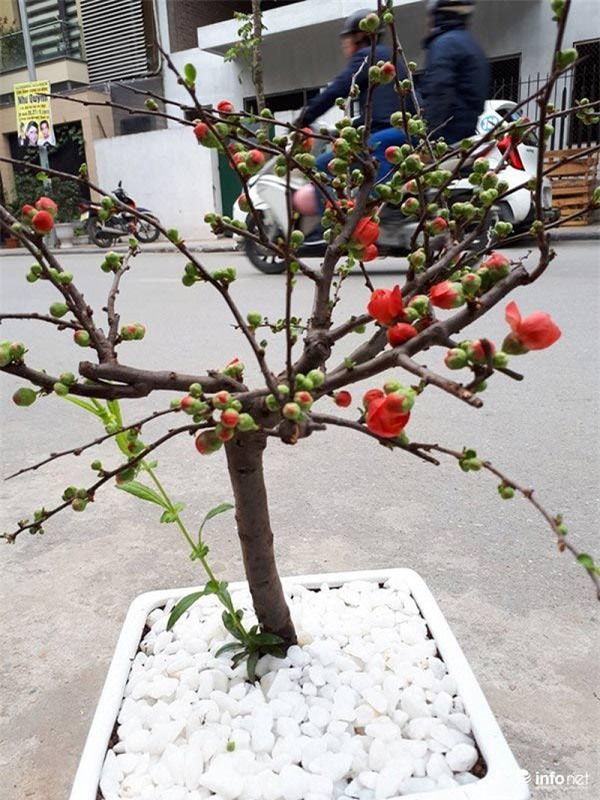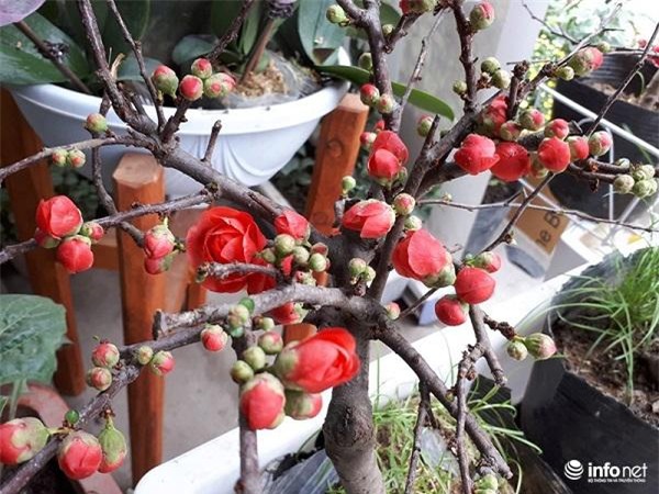 Chủ cửa hàng “Vườn xinh” ở Minh Khai (Hai Bà Trưng, Hà Nội) cho biết, cây hoa mai đỏ “lạ mắt” này có xuất xứ từ Trung Quốc.