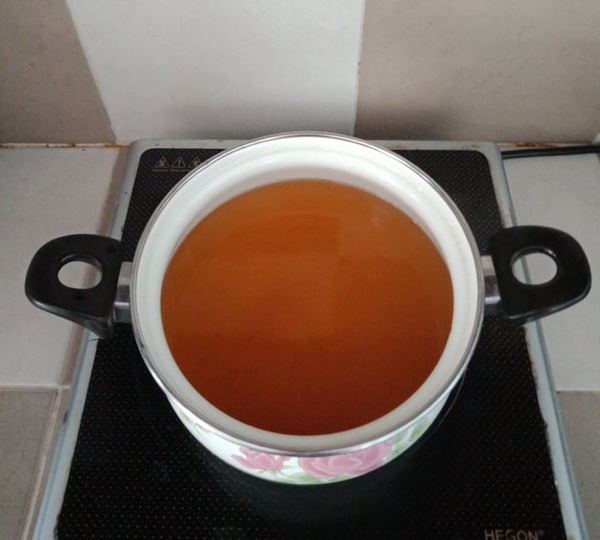 Cho nước, nước mắm, đường, giấm và muối trong phần nguyên liệu xốt ngâm vào nồi. Đun sôi, tắt lửa và để nguội.