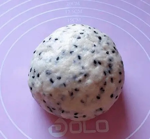 150g bột mì đa dụng, 25g đường, 12g hạt vừng đen, lượng nước ấm vừa phải.