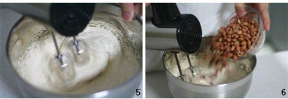 Bạn đánh cho trứng và siro quyện vào nhau tạo thành màu trắng nhạt, cuối cùng thêm lạc rang chín vào trộn chung.