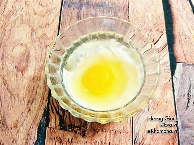 Bước 2: Cho bột năng, nước đá lạnh, trứng gà vào bát và khuấy đều hỗn hợp cho hòa tan.
