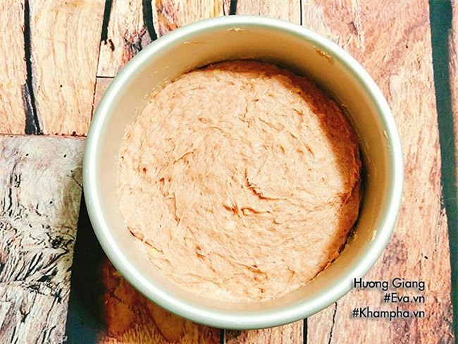 Bước 5: Bật lò nướng ở nhiệt độ 160 độ C làm nóng lò để nướng chả. Hỗn hợp thịt sau khi xay xong thì múc cho vào khuôn, dàn đều để mặt chả được bằng phẳng và không bị lồi lõm là được.
