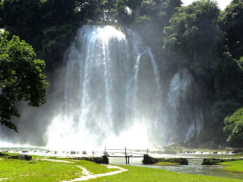 Thời tiết vẫn còn oi bức, nhưng từ xa nhìn thấy thác nước ào ạt đổ về trắng xóa một vùng như cảm thấy có làn gió làm mát dịu giữa trưa hè nóng bỏng. Thác Bản Giốc nằm trên sông Quế Sơn (Quây Sơn) thuộc biên giới giữa Việt Nam và Trung Quốc. Vẻ đẹp thiên nhiên vốn có của thác Bản Giốc đã được công nhận là thác nước lớn thứ tư thế giới trong các thác nước nằm trên một đường biên giới giữa các quốc gia.