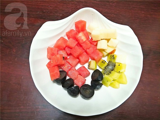 Hoa quả rửa sạch, gọt vỏ và cắt hạt lựu.