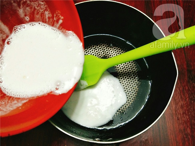 Chia rau câu làm 2 phần, 1 phần cho nước cốt dừa vào khuấy đều và đun sôi trở lại là tắt bếp.