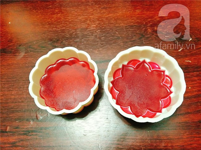 Bạn múc rau câu thanh long đổ 1 lớp vào khuôn, cũng có thể đổ lớp rau câu dừa trước đều được. Khi lớp rau câu se mặt thì tiếp tục đổ 1 lớp rau câu tiếp theo, cứ như vậy bạn đổ mấy lớp tùy theo ý thích nhé. Phần rau câu trong nồi bạn nên giữ ấm để rau câu không bị đông lại nhé. Rau câu sau khi đổ xong bạn chờ cho nguội rồi đem cất tủ lạnh vài tiếng cho rau câu đông lại, khi ăn lấy rau câu úp ra đĩa để thưởng thức.