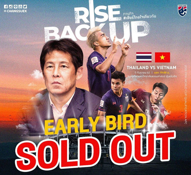 Vé trận ĐT Thái Lan - ĐT Việt Nam đợt đầu đã bán hết. Ảnh: Twitter Changsuek.