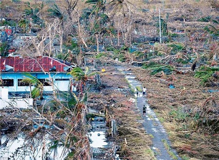Cảnh tượng tan hoang ở Philippines khiến nhiều người liên tưởng tới thảm họa động đất kèm theo sóng thần trên lãnh thổ Nhật Bản vào năm 2011. Ảnh: Reuters. |