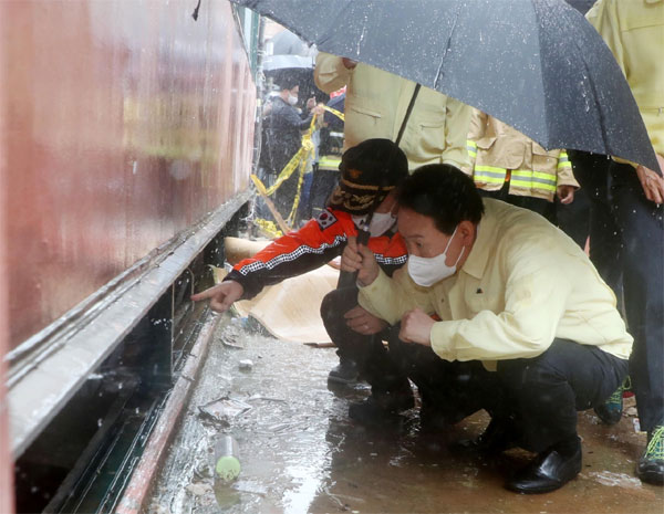 Hôm 9/8, khi Tổng thống Hàn Quốc Yoon Suk Yeol đến thăm khu vực nơi gia đình ba người thiệt mạng, ngôi nhà vẫn ngập trong nước lũ cao đến thắt lưng. Gối, bàn ghế và túi ni lông nổi lềnh bềnh bên trong.