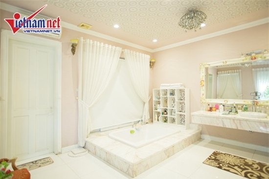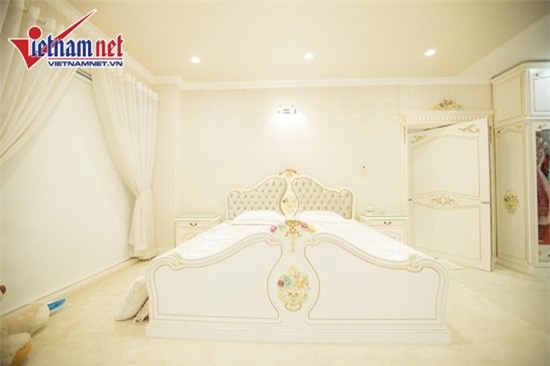 Phòng ngủ rộng rãi, đẹp lộng lẫy như hoàng gia. Song Hồ Quỳnh Hương chỉ cần một chỗ ngồi nhỏ để tĩnh tâm nhập thiền.