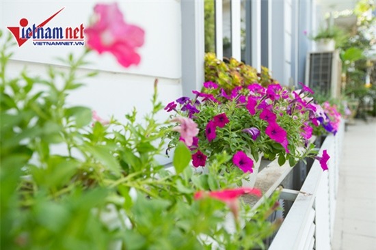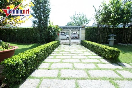 Ngoài sân sau ngôi biệt thự là hồ bơi, vườn hoa. Thỉnh thoảng Hồ Quỳnh Hương cũng ra vườn để ngồi thiền hoặc ngắm ánh mặt trời.