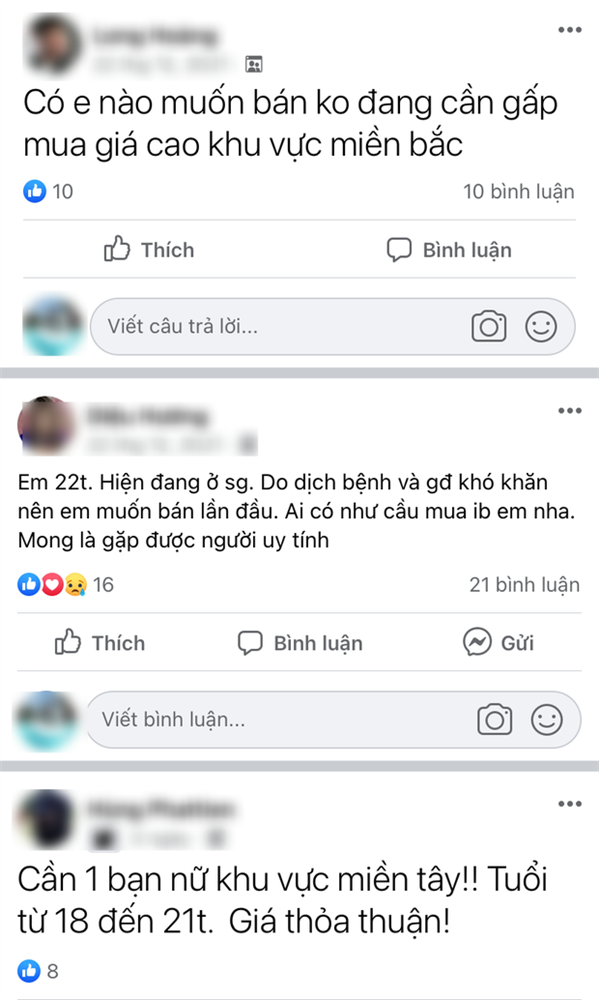 Những bài đăng tìm người mua/bán trinh tiết trong các group trên MXH
