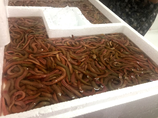 Nói về cách bảo quản để rươi luôn được tươi sống, khoẻ mạnh trước khi xuất đi, chị Oanh cho biết: Rươi sống dưới đất, ở nền nhiệt độ mát nên khi thu gom về, công việc giữ nhiệt cho rươi khá cầu kỳ.
