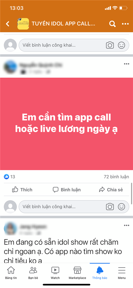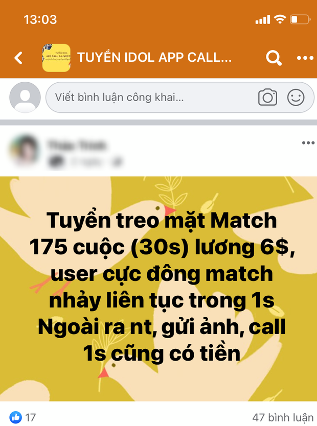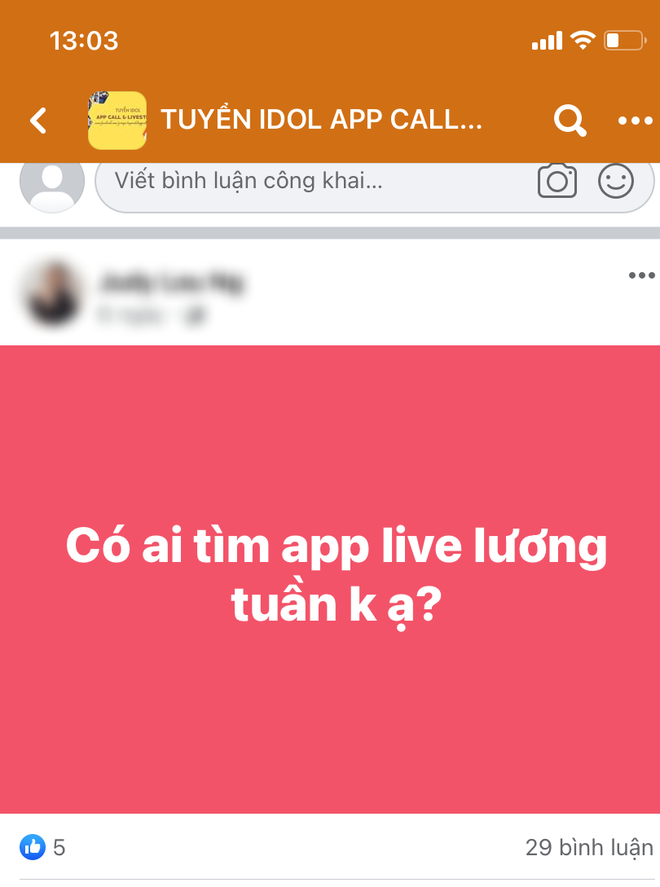 Gõ từ khóa "idol livestream", "tuyển idol livestream" trên Facebook là có thể tìm thấy hàng chục nhóm tuyển dụng từ các app của nước ngoài (đa số là Trung Quốc) với hàng chục ngàn thành viên.