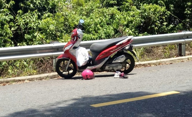 Trên đường đi tham quan bán đảo Sơn Trà (Đà Nẵng) về, trong lúc đổ đèo thì xe máy do 1 người phụ nữ điều khiển đã tự ngã, khiến con gái và mẹ chồng bị hất văng xuống vực, tử vong.