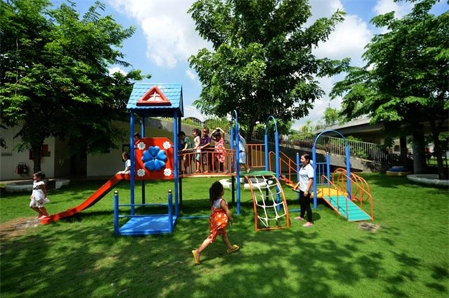 Không gian rộng rãi giúp các em thỏa sức vui chơi. Khu vui chơi ngoài trời được thiết kế phủ với 70% là lớp cỏ màu xanh, gần gũi với thiên nhiên.