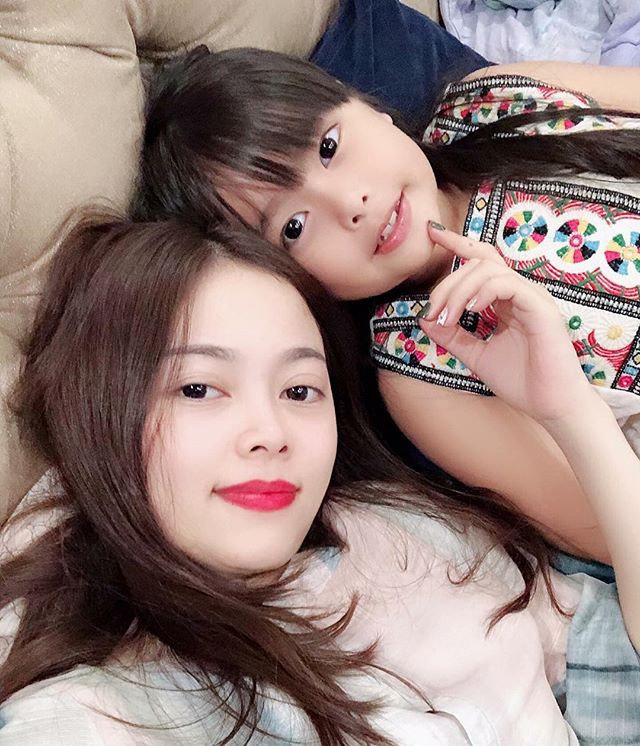 Hai mẹ con đọ sắc bên nhau.