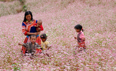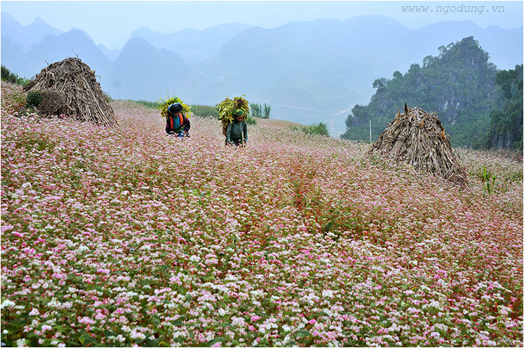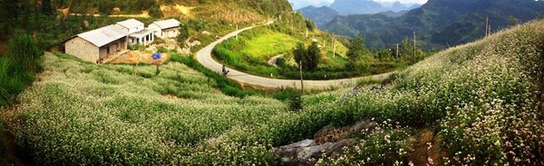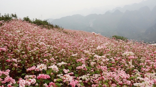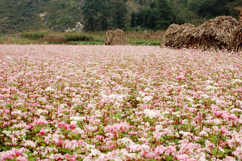 Vào những ngày thu của tháng 10 hoa tam giác mạch hồng tím nở rộ trải dài trên vùng cao nguyên đá Đồng Văn - tỉnh Hà Giang. Hoa hồng trắng li ti, cánh chụm lại thành hình chóp nón, có ba mặt tam giác, giữ ở giữa một hạt mạch quý tạo nên vẻ đẹp bí ẩn.