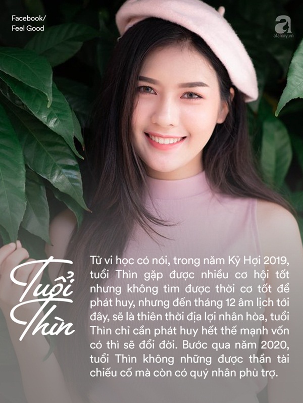 Tử vi học có nói, trong năm Kỷ Hợi 2019, tuổi Thìn gặp được nhiều cơ hội tốt nhưng không tìm được thời cơ tốt để phát huy, nhưng đến tháng 12 âm lịch tới đây, sẽ là thiên thời địa lợi nhân hòa, tuổi Thìn chỉ cần phát huy hết thế mạnh vốn có thì sẽ đổi đời. Bước qua năm 2020, tuổi Thìn không những được thần tài chiếu cố mà còn có quý nhân phù trợ. Trong vòng 5 năm tới, tuổi Thìn sẽ xây dựng sự nghiệp vững chắc, tài vận ngày càng dồi dào, cuộc sống thăng hoa rực rỡ khiến ai cũng ngưỡng mộ.