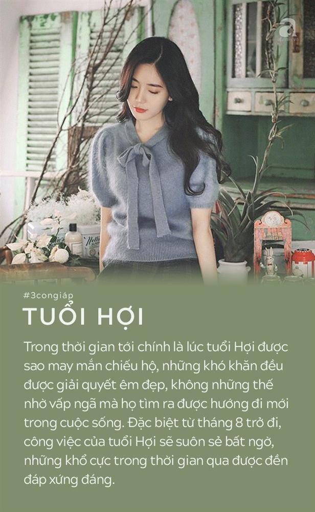 Trong năm Mậu Tuất này, tuổi Hợi được xem làm một trong những con giáp gặp được nhiều may mắn. Nếu như nửa năm đầu bao nhiêu phiền muộn, lo lắng đều dồn hết lên đôi vai của họ thì vào những tháng cuối năm, tuổi Hợi có thể buông nhẹ và hưởng thụ cuộc sống của mình. Bởi lẽ, trong thời gian tới chính là lúc tuổi Hợi được sao may mắn chiếu hộ, những khó khăn đều được giải quyết êm đẹp, không những thế nhờ vấp ngã mà họ tìm ra được hướng đi mới trong cuộc sống. Đặc biệt từ tháng 8 trở đi, công việc của tuổi Hợi sẽ suôn sẻ bất ngờ, những khổ cực trong thời gian qua được đền đáp xứng đáng. Từ công việc đến cuộc sống gia đình, tất cả đều thập toàn thập mỹ và đương nhiên tài lộc cũng tăng vọt lên bất ngờ. Dự kiến, cuối năm tuổi Hợi sẽ đạt được thành quả như mong ước, tiền tài dư dả đủ để kinh doanh sinh lợi, sống thoải mái đến hết năm sau.