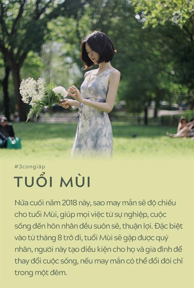 Mỗi ngày trôi qua tuổi Mùi luôn hy vọng mình sẽ gặp được nhiều điều tốt đẹp. Tuy nhiên, họ không chỉ biết nghĩ mà luôn nỗ lực, cố gắng không ngừng. Nửa cuối năm 2018 này, sao may mắn sẽ độ chiếu cho tuổi Mùi, giúp mọi việc từ sự nghiệp, cuộc sống đến hôn nhân đều suôn sẻ, thuận lợi. Đặc biệt vào từ tháng 8 trở đi, tuổi Mùi sẽ gặp được quý nhân, người này tạo điều kiện cho họ và gia đình để thay đổi cuộc sống, nếu may mắn có thể đổi đời chỉ trong một đêm. Tuổi Mùi tuy thông minh, tài năng nhưng không phải là những người giỏi trong chuyện kinh doanh, tuy nhiên, vào những tháng cuối năm nay, họ có cơ hội mở ra một chân trời mới trong sự nghiệp, giúp cuộc sống thăng hoa, ổn định, tiền bạc tự động chạy vào túi. Dự kiến cuối năm sẽ tạo dựng được khối tài sản kha khá, giúp đỡ được bản thân, gia đình và những người xung quanh đang gặp khó khăn.