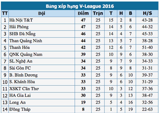 Kết quả vòng 25 V-League, 17h ngày 11/9
