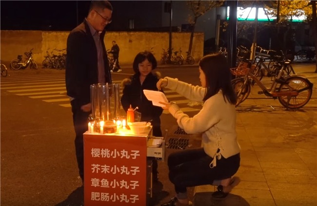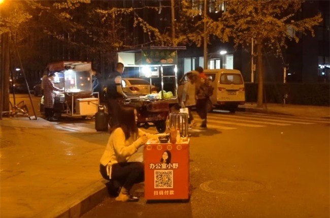 Thử bán xem có ai mua không nào? Tiểu Dã ngồi chung với các xe hàng rong khác trong khu phố để tìm khách.