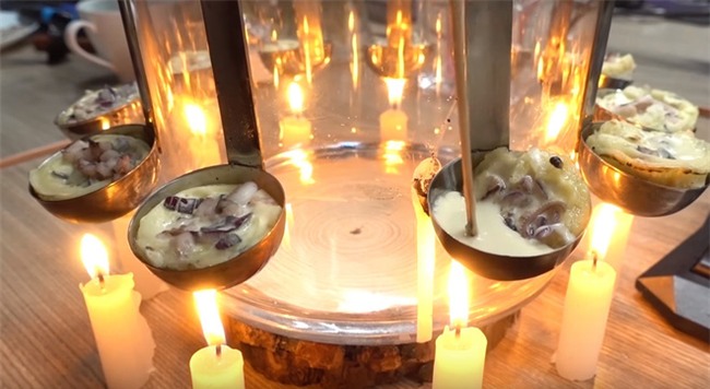 Dĩ nhiên là Tiểu Dã chẳng cần đến khuôn đúc để tạo ra loại bánh này. Cô đã nghĩ ra cách đun nóng những chiếc thìa (muôi múc canh) bằng nến và làm chín đồ ăn từ một lượng nhiệt vừa đủ tỏa ra từ những cây nến nhỏ này. Các công đoạn như nhào bột hay đổ bánh được Tiểu Dã làm rất thuần thục và khéo léo. Không chỉ đổ bánh bạch tuộc, Tiểu Dã còn thử làm bánh tôm, bánh nhân cherry nhìn cực ngon mắt.