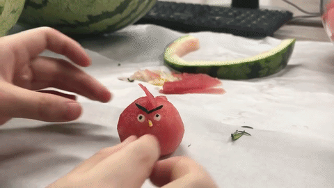 Chưa hết, cô nàng còn dùng dưa hấu để tạo nên Angry bird và những chú heo con trong trò chơi cùng tên vô cùng nổi tiếng nữa cơ. Tức là bạn có thể chơi Angry bird bằng dưa hấu rồi... ăn nó luôn. Thú vị quá đúng không nào?